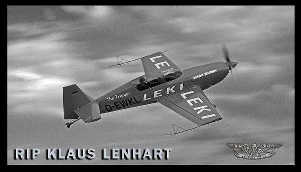Klaus fliegt nicht mehr... 01.05.2012 ...heute früh mußte ich in den Medien lesen das mein Freund Klaus Lenhart gestern tödlich verunglückte. Mein Beileid an seine Familie... Ich bin tief erschüttert...Ich lernte Ihn bei deutschen Kunstflugmeisterschaften kennen. Er war ein sehr freundlicher kompetenter Flieger Unternehmer und Mensch. R.I.P.